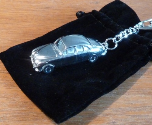 Schlüsselanhänger MK IIBeschreibung: Ein Jaguar MK II Modell 1:87 als Schlüsselanhänger. Aus Weißmetall in Kleinstserie für die JAG hergestellt, von Hand poliert und galvanisch versilbert | ||