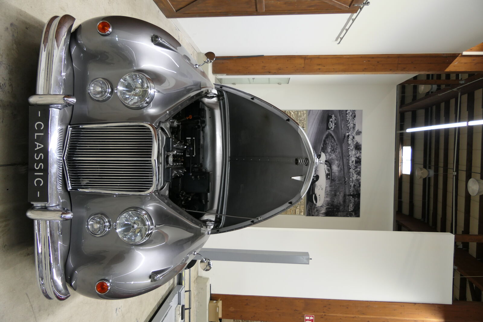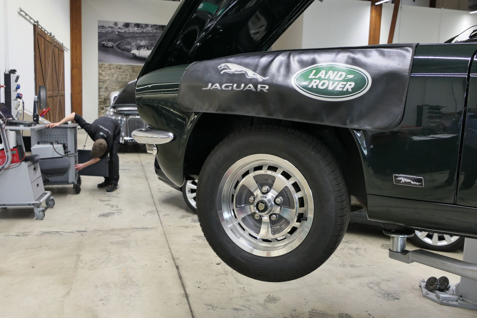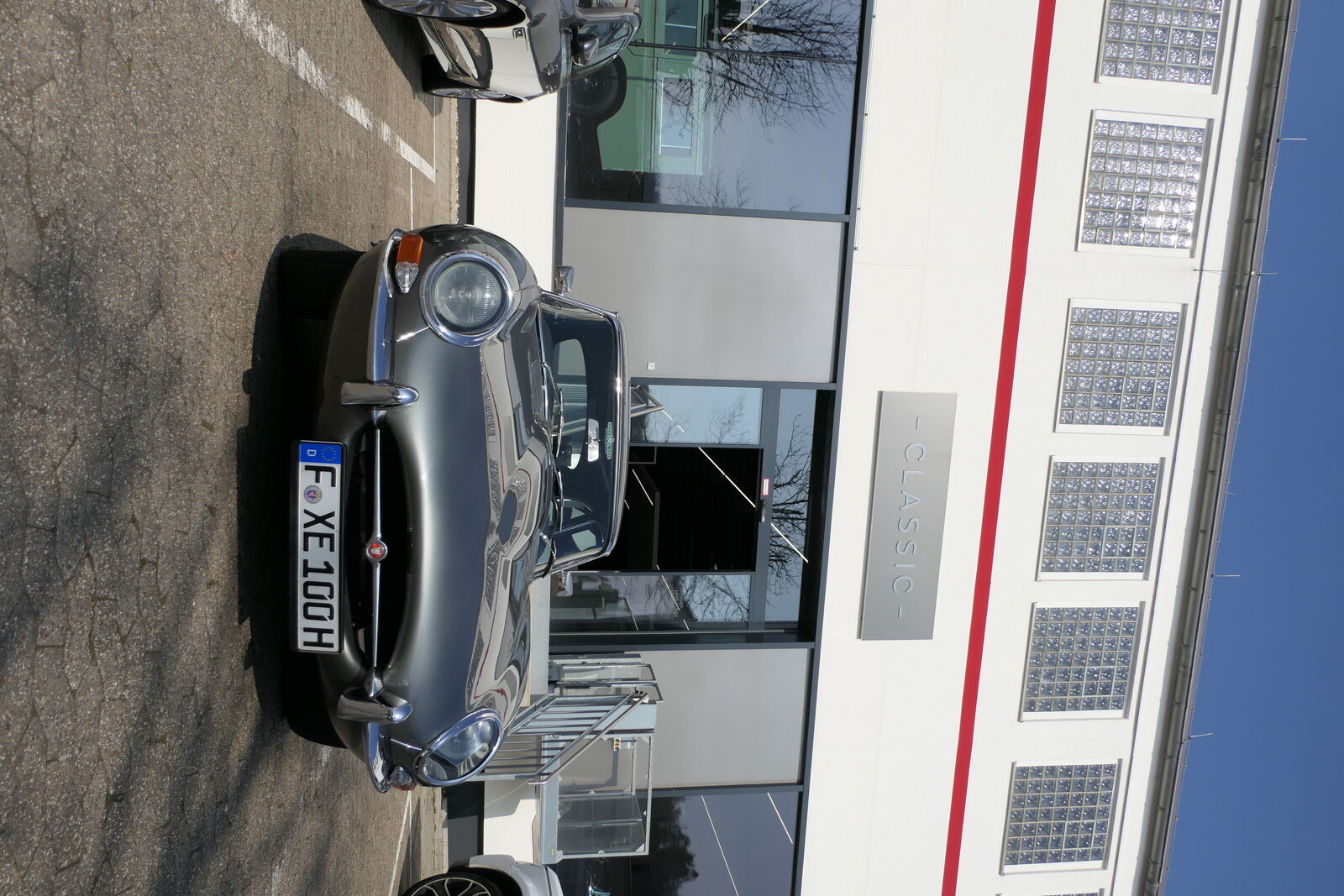 Derart kulinarisch und moralisch gestärkt, fuhren wir die kurze Strecke zum Classic Center, wo wir vom Geschäftsführer der JLR Classic Deutschland GmbH, Dr. Ralf Klasen, sehr freundlich begrüßt wurden. Außer ihm waren noch Oliver Schepp-Danne, Head of Sales, und Marco Walter, Workshop Manager, vor Ort, um uns zu informieren. In einer kleinen Einführung machte Ralf Klasen deutlich, dass Essen neben dem britischen JLR Classic Center das einzige Center weltweit ist. Das Center ist an die englische Zentrale angebunden und unabhängig von der Jaguar Land Rover Deutschland GmbH. Die Pflege der automobilen Jaguar-Tradition erfolgt u.a. durch den Neuaufbau von Fahrzeugen nach alten Plänen, wie aktuell den D-Type. Seit 2014 hat Jaguar bereits sechs Lightweight E-Type und neun XKSS wieder auf die Räder gestellt. Im Programm Classic Works bietet JLR Classic hochwertige Fahrzeuge mit Garantie sowie Werkstattarbeiten und Ersatzteilservice an. Ralf Klasen: „Natürlich sind wir eine Company, die Gewinn erzielen muss. Aber alle Mitarbeitenden sind stolz darauf, am Erhalt der Jaguar-Tradition mitwirken zu können.“