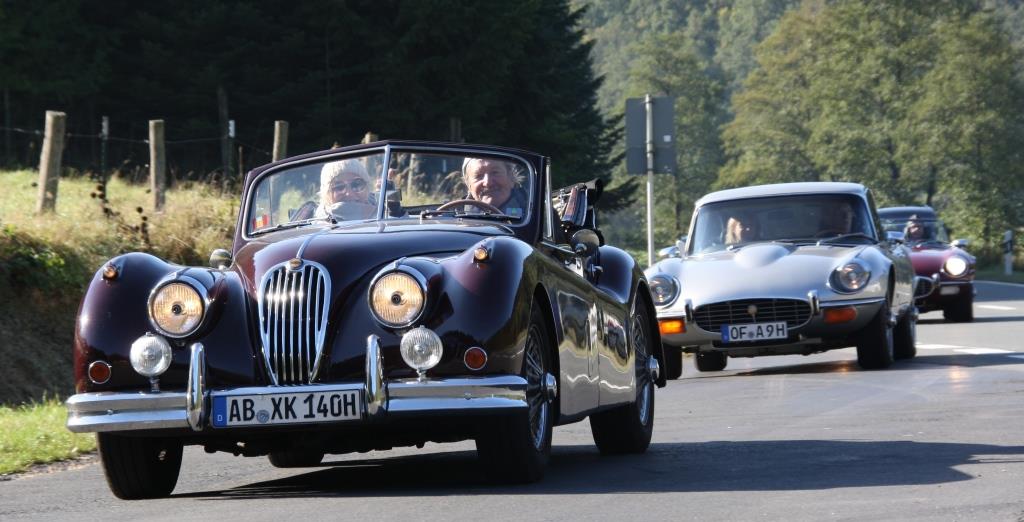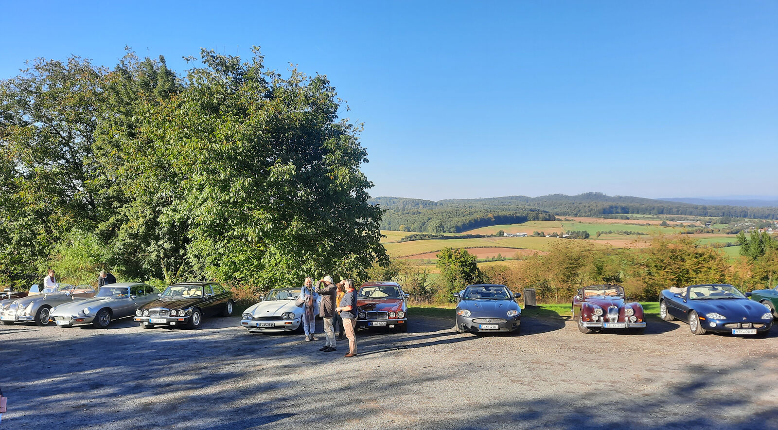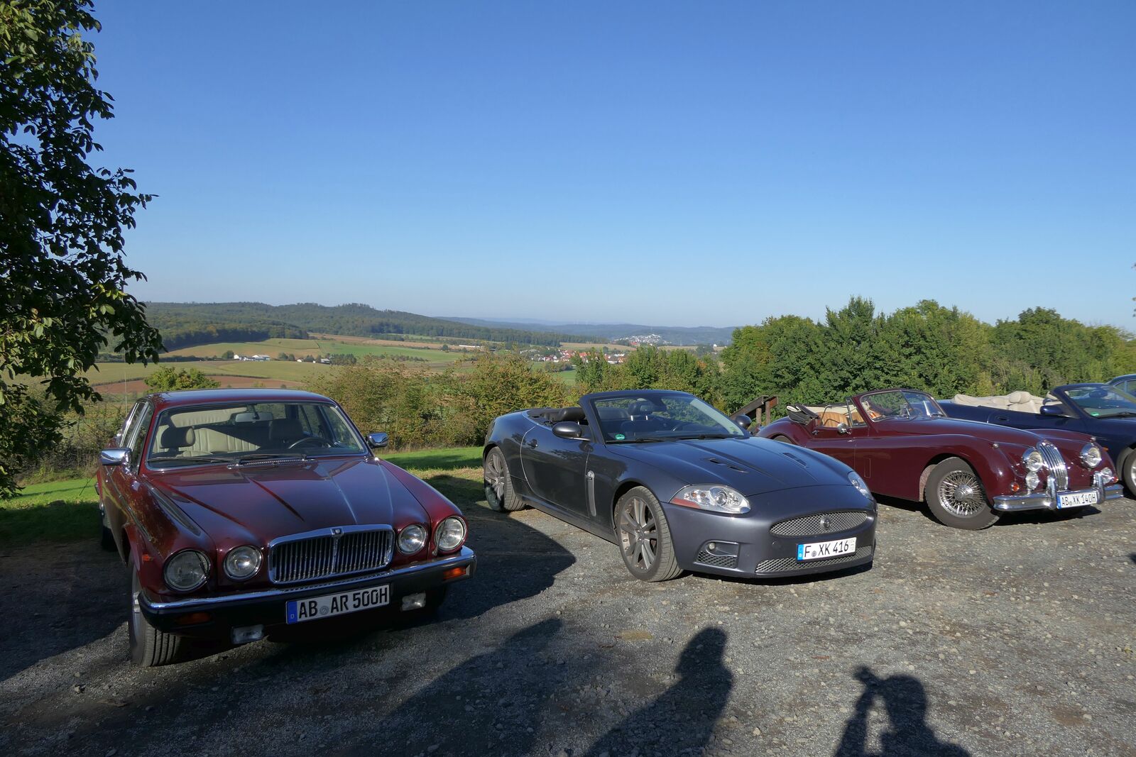 So genossen wir diese Fahrt, die uns dann noch durch den südlichen Teil des Vogelsbergkreises führte in vollen Zügen. Immer wieder schön ist bei diesen gemütlichen Fahrten über Nebenstrecken und damit auch durch Dörfer: Eine Kolonne von meist älteren Jaguaren wird freundlich begrüßt, es wird uns zugewinkt. Keine Spur von „Umweltverschmutzer“, „Abgassünder!“ o.ä. ist zu spüren. Offensichtlich ist zumeist die Freude über die schönen alten Fahrzeuge größer, als die Angst vor den ausgestoßenen Abgasen.