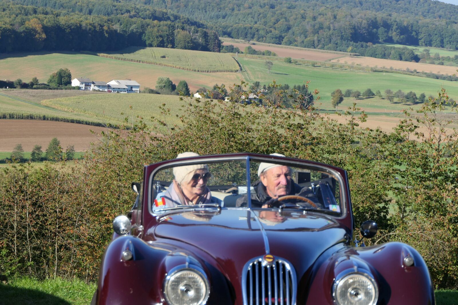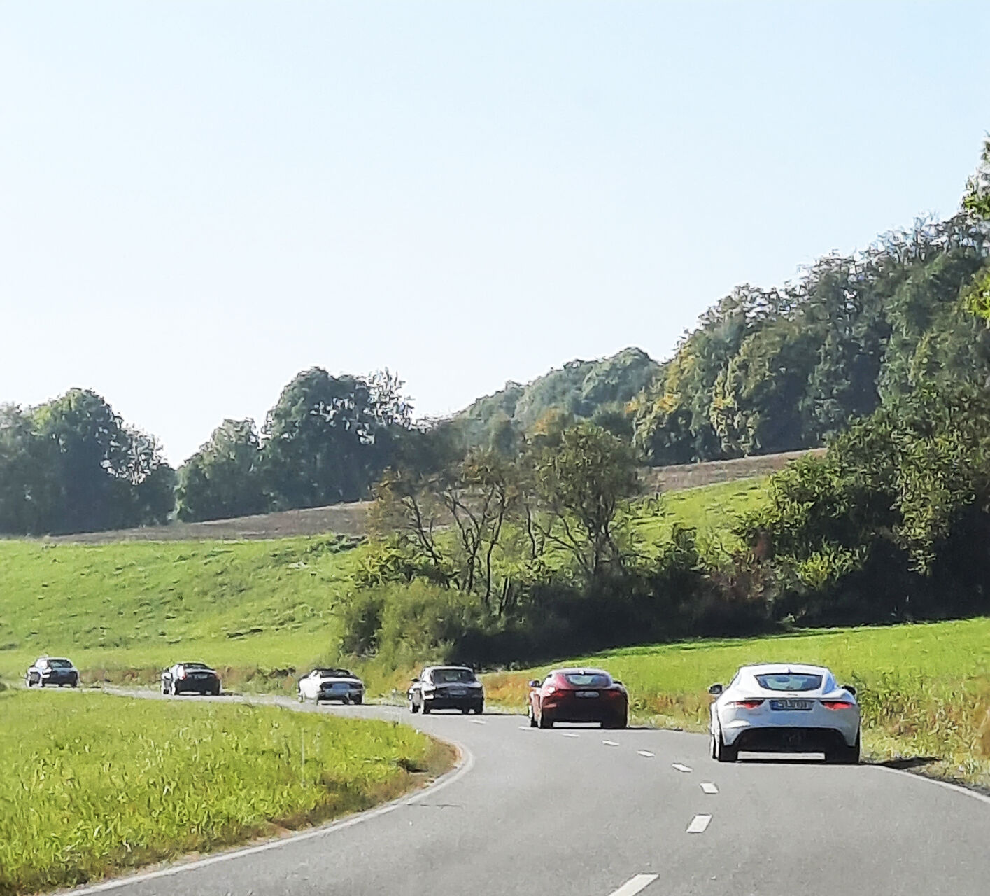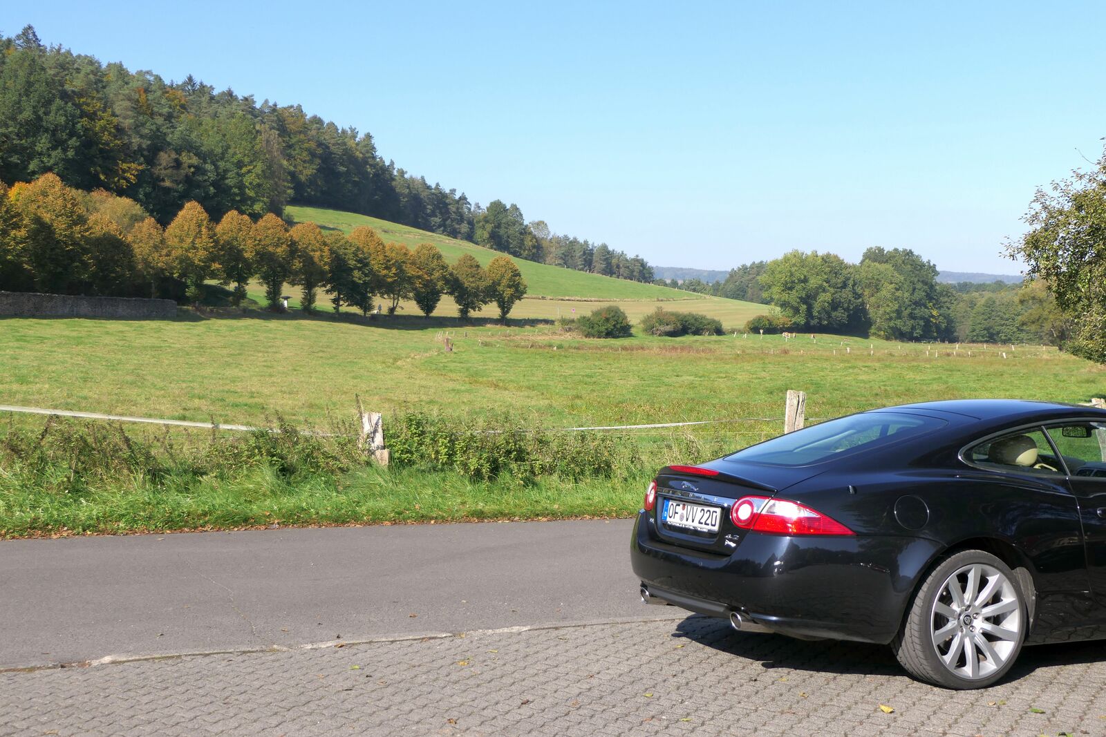 So genossen wir diese Fahrt, die uns dann noch durch den südlichen Teil des Vogelsbergkreises führte in vollen Zügen. Immer wieder schön ist bei diesen gemütlichen Fahrten über Nebenstrecken und damit auch durch Dörfer: Eine Kolonne von meist älteren Jaguaren wird freundlich begrüßt, es wird uns zugewinkt. Keine Spur von „Umweltverschmutzer“, „Abgassünder!“ o.ä. ist zu spüren. Offensichtlich ist zumeist die Freude über die schönen alten Fahrzeuge größer, als die Angst vor den ausgestoßenen Abgasen.