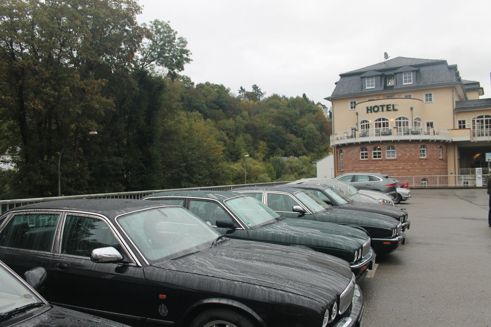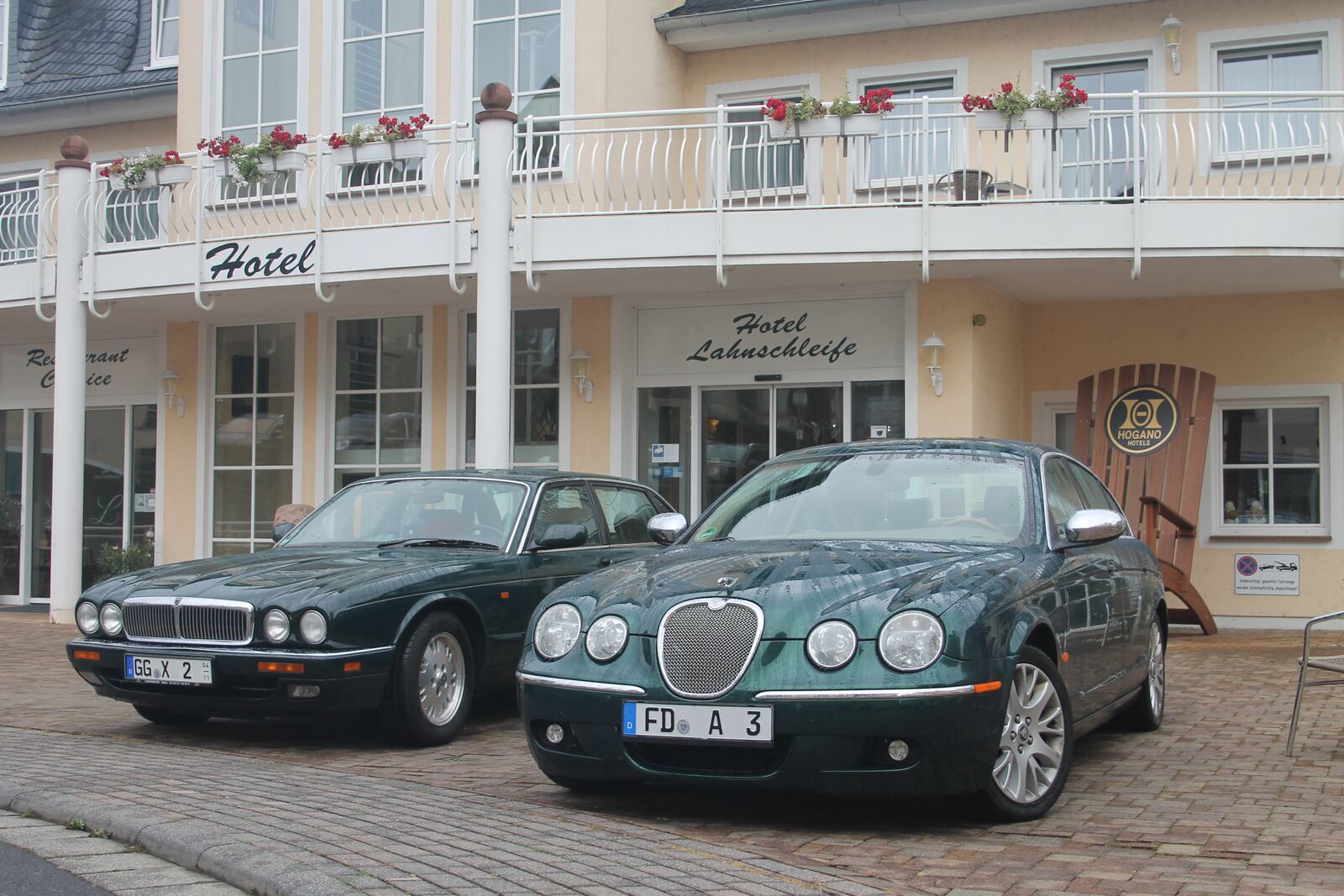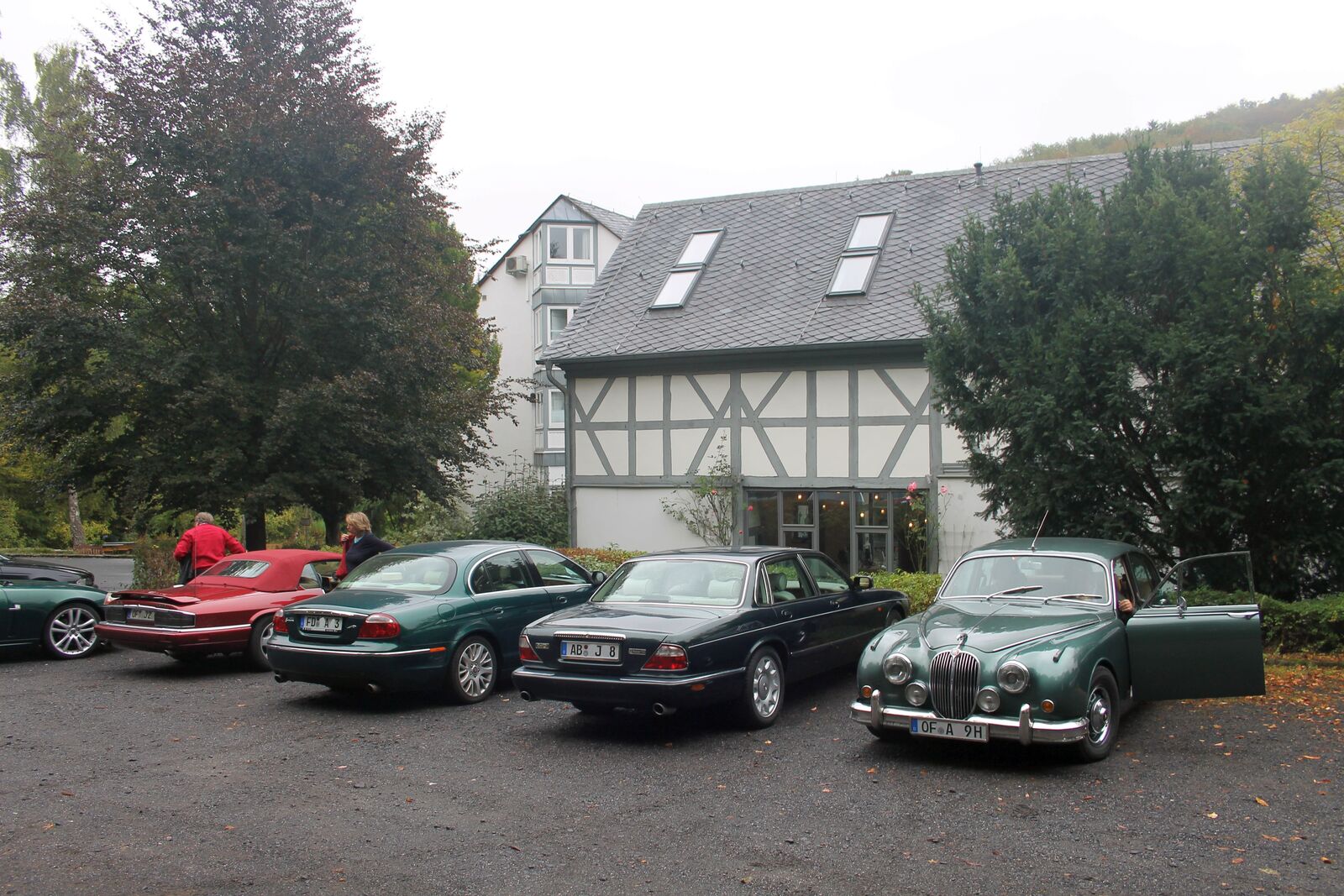 Dort hatte das Hotel Lahnschleife für uns und – Überraschung! – für eine zweite Gruppe Jaguarfans das gesamte Parkdeck gesperrt.