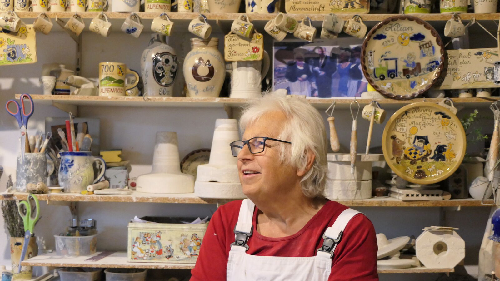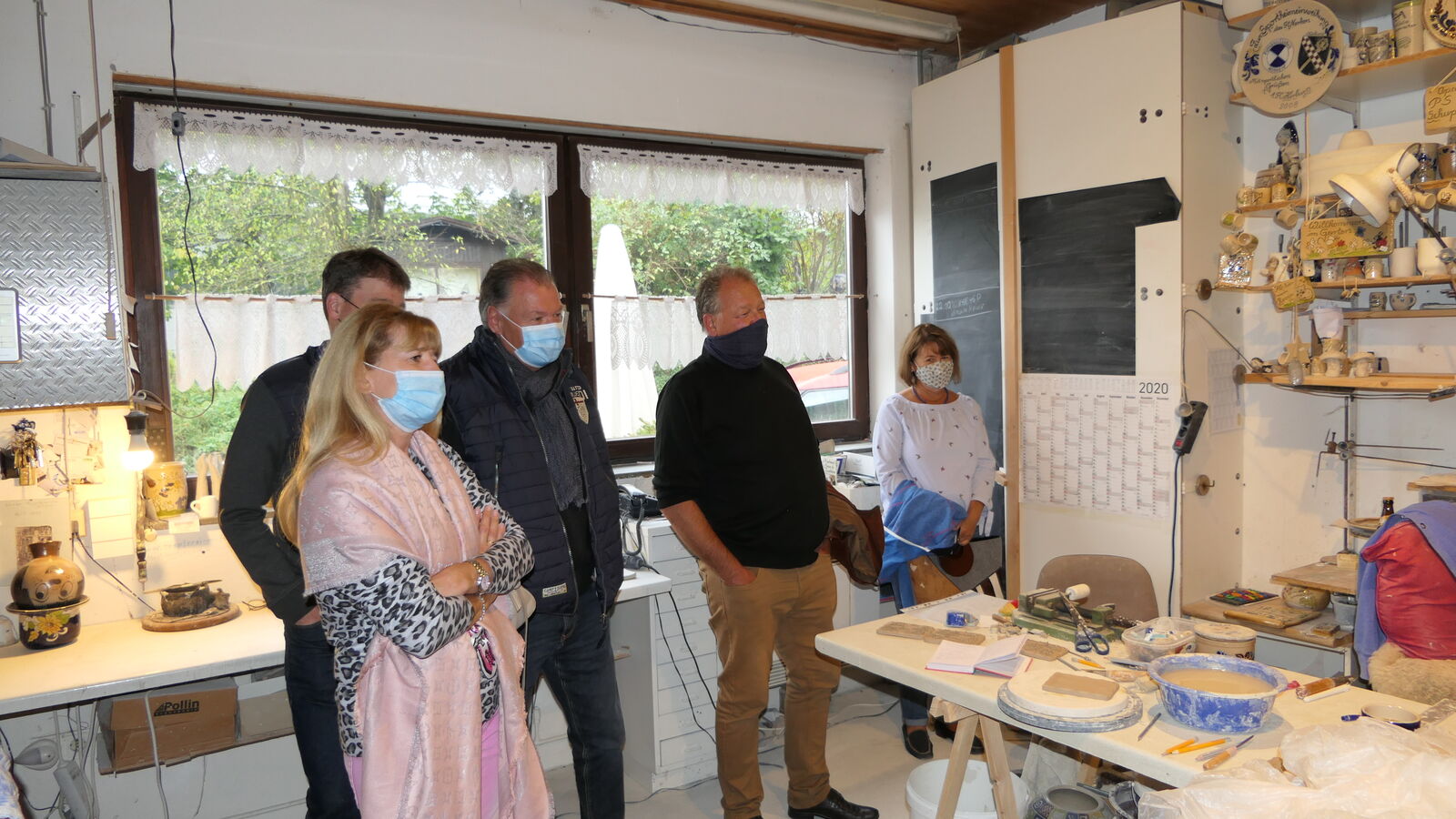 Dann ging es weiter: Ziel war jetzt die Töpferei M. Fürst in Alpenrod. Zugegebenermaßen: Das Gebäude von außen ist nicht übertrieben einladend, gelegen in einem kleinen Gewerbegebiet. Aber: Es handelt sich ja auch um einen Gewerbebetrieb. Und der Empfang durch Frau Fürst und ihren Mitarbeiter konnte nicht herzlicher sein! Sie hatte sogar extra am Vortag nochmals angerufen, ob alles so bleibt, wie abgesprochen; Sie wollte nämlich beginnen, den versprochenen Kuchen zu backen.
