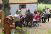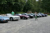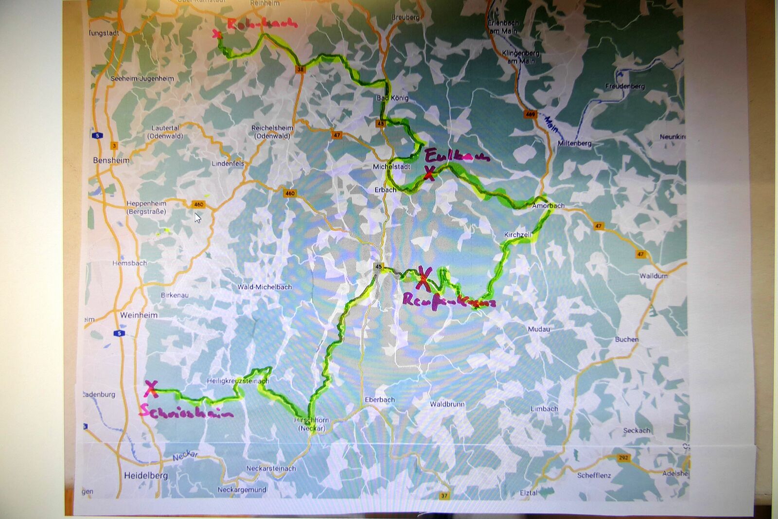 Der nächste Streckenabschnitt war durch die Wälder des Odenwaldes geprägt und führte über Amorbach zum „Reußenkreuz“. Ein Campmobil auf der Landstraße, das fast alle Teilnehmer überholen mussten, sorgte anschließend für reichlich Gesprächsstoff. Auf der Außenterrasse des Lokals war aber genug Zeit für Essen und Getränke und den Austausch von Erlebnissen.