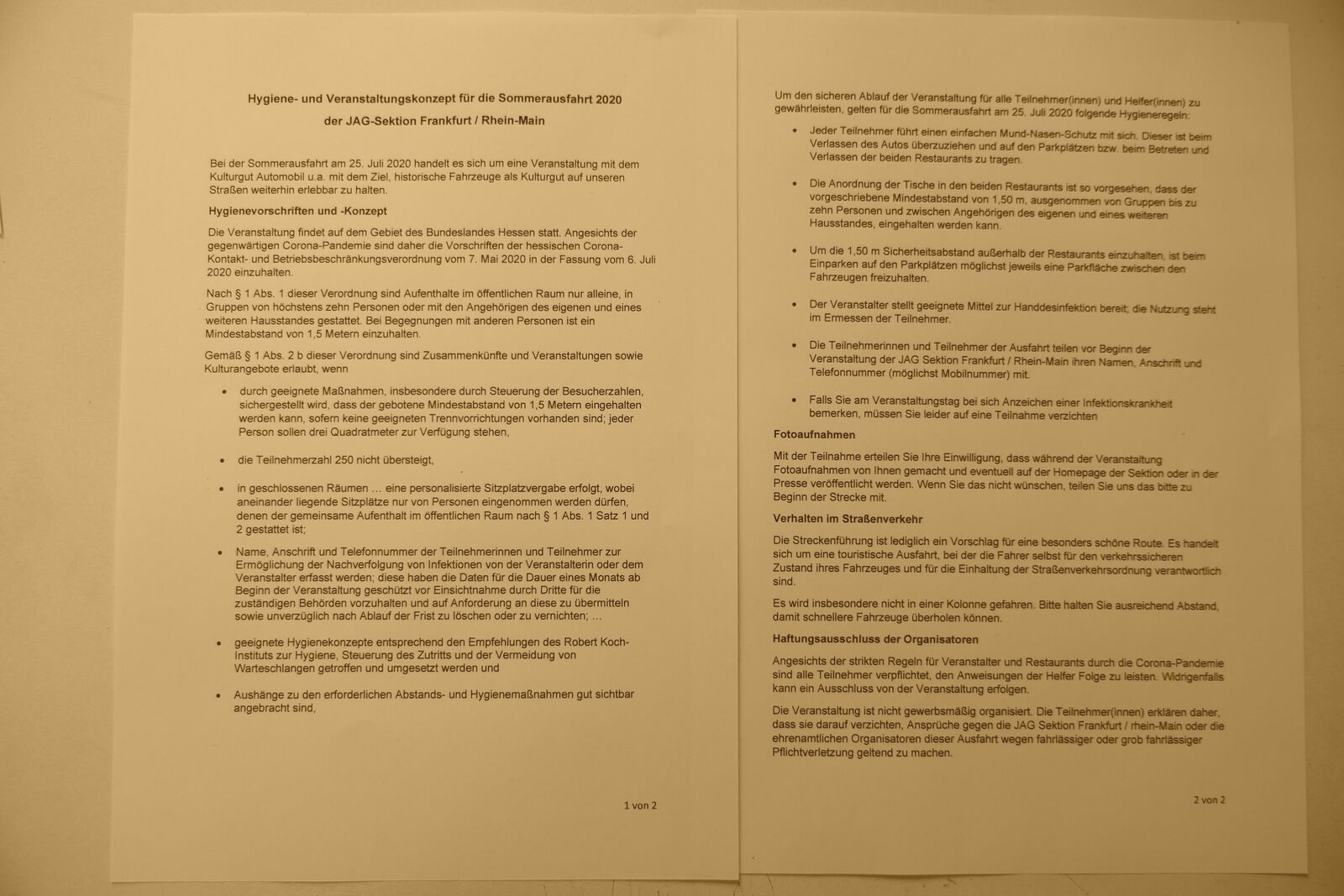 Lange hatte Corona uns blockiert und die Frühlingsausfahrt fiel aus, aber am 25. Juli hat die Sektion Frankfurt/Rhein-Main einen erfolgreichen Start in die Saison 2020 gemacht. Christine und Martin Dolleschel haben auf Basis alter Unterlagen eine schöne Tour durch den Odenwald organisiert. Ein Hygiene- und Veranstaltungskonzept hat die Ausfahrt gesundheitlich und rechtlich abgesichert.