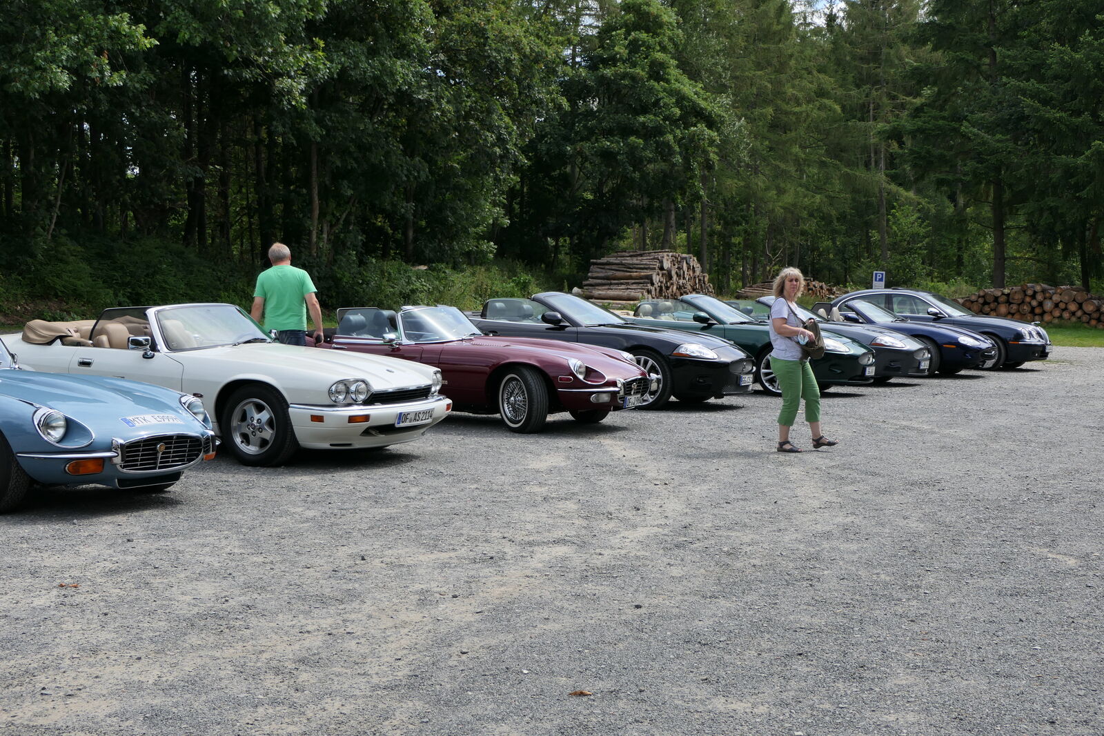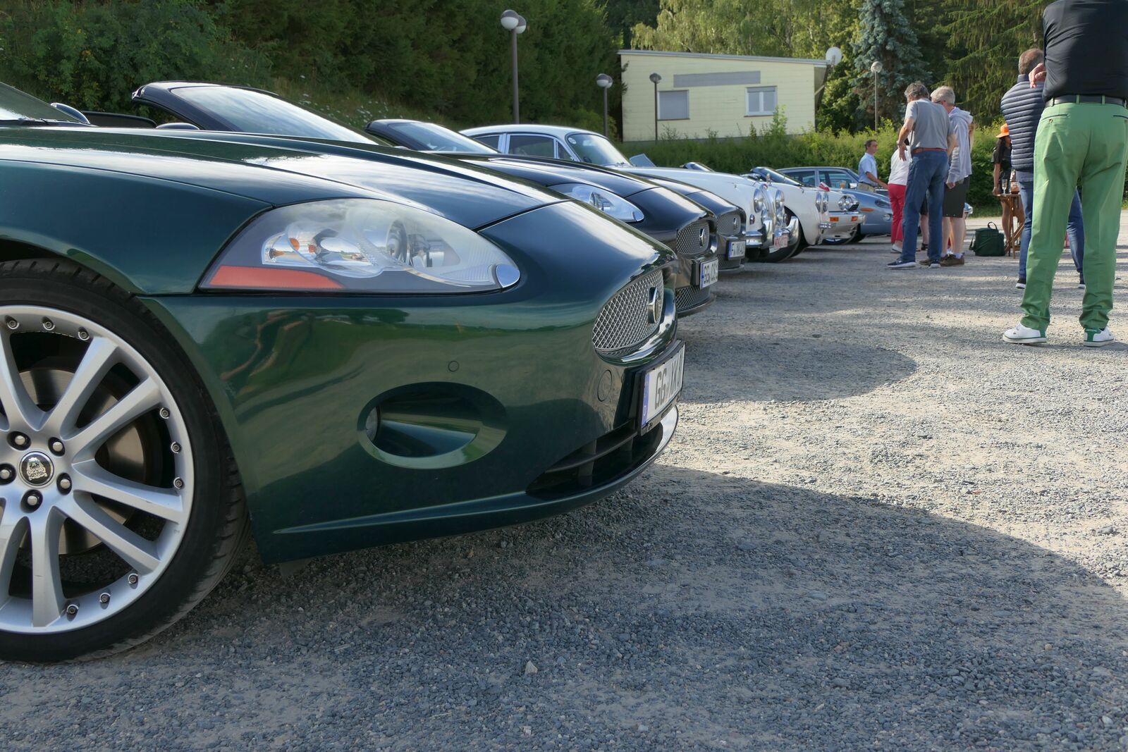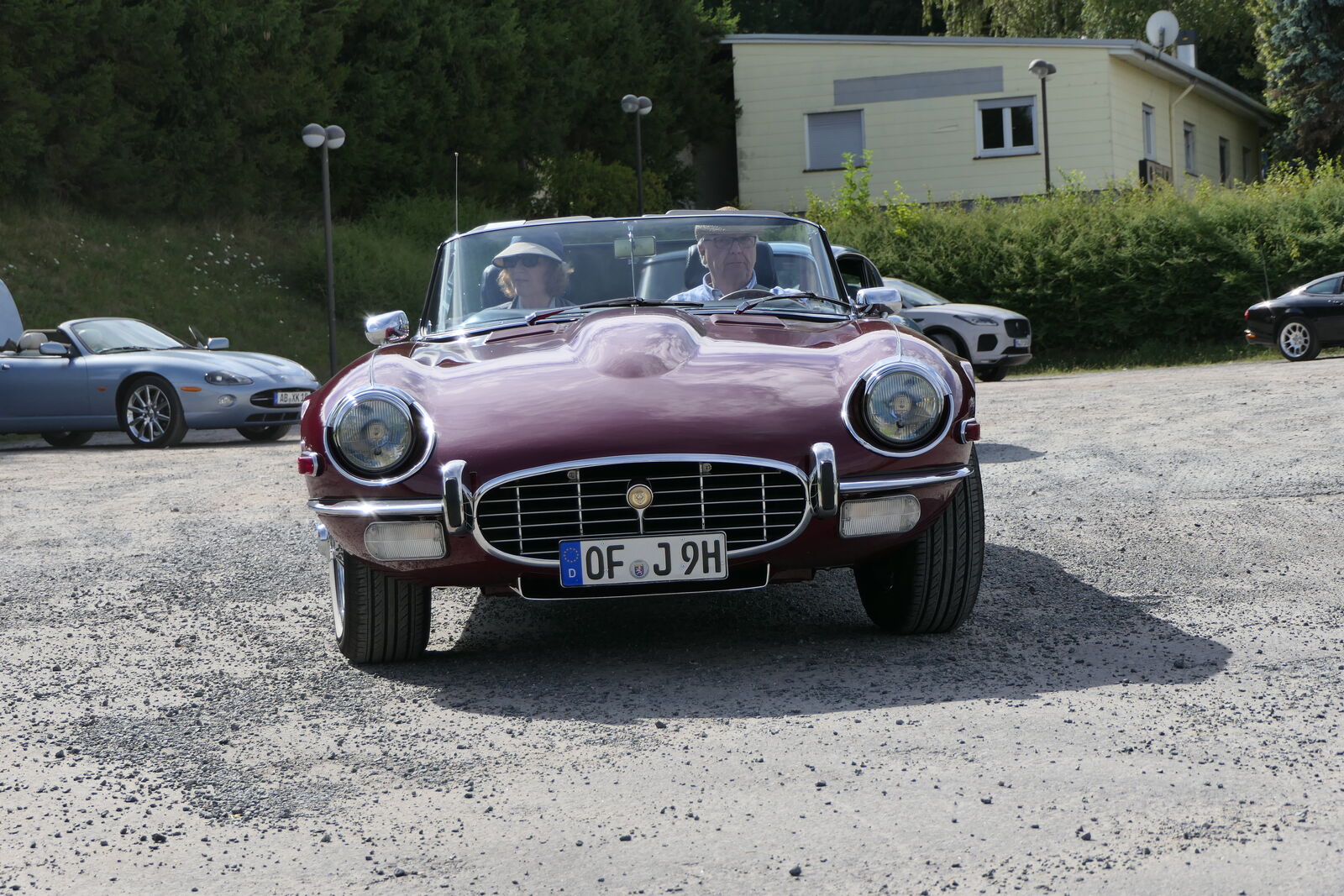 Alles stand bereit, um die 17 Jaguar- Fahrzeuge mit 35 Teilnehmenden zu empfangen; mit Butterbrezeln, Sekt, Saft und Mineralwasser warteten Christine und Martin auf die gemeldeten „Katzen“. Doch die Anfahrt hatte ihre Tücken: Das Navi schickte die meisten in eine kleine Gasse „Außerhalb“ direkt in Ober-Ramstadt statt zur richtigen Adresse „Außerhalb“ in Rohrbach (gehört auch zu Ober-Ramstadt). Doch nach und nach trudelten alle ein, die sich angemeldet hatten. Mit Dr. Stefan Kapp (Mitgliedsnummer 239) und Eckhart Kern (Mitgliedsnummer 314) waren mal wieder zwei Jaguarfreunde dabei, die der JAG seit etwa vierzig Jahren angehören und entsprechend viel zu erzählen hatten.