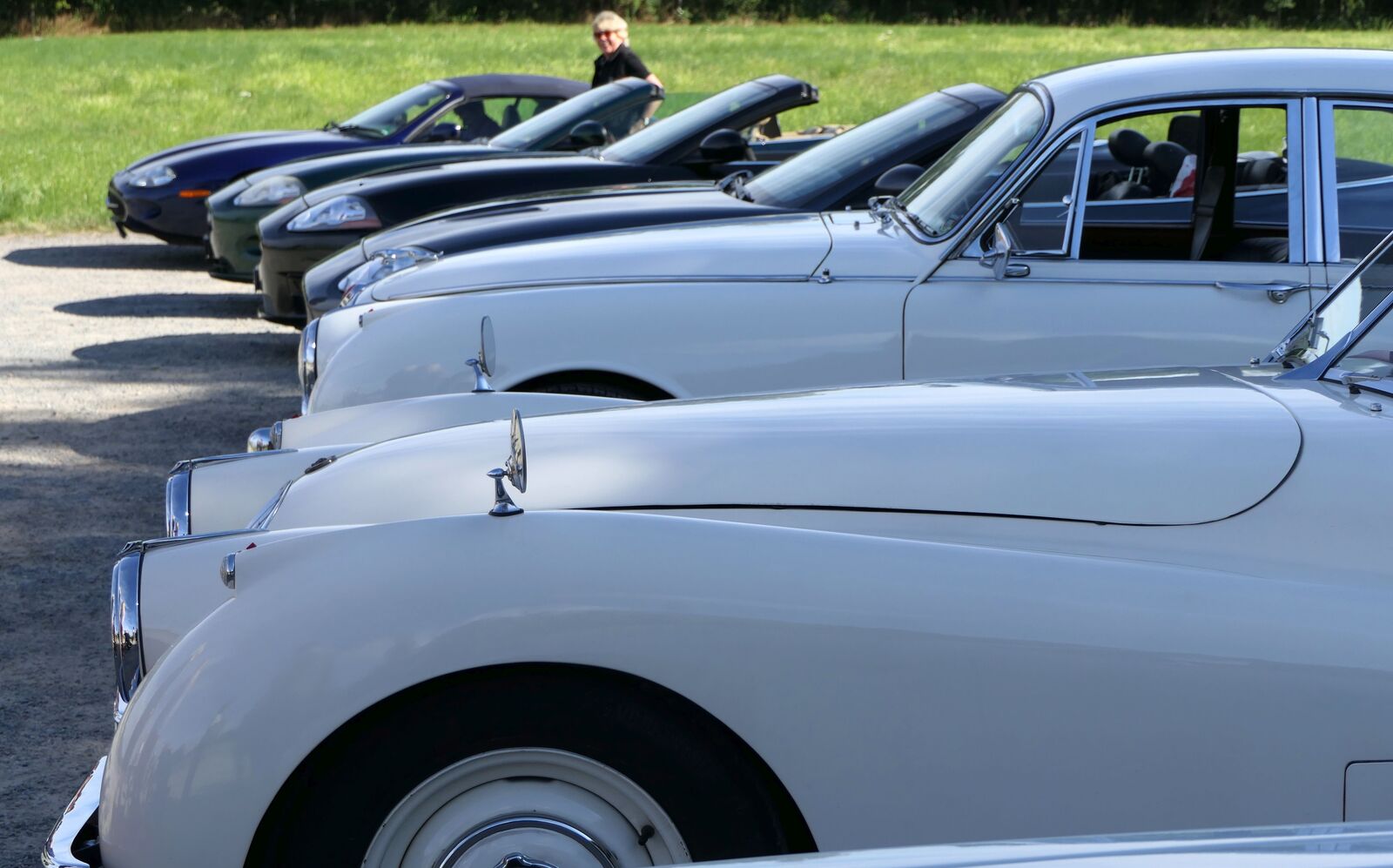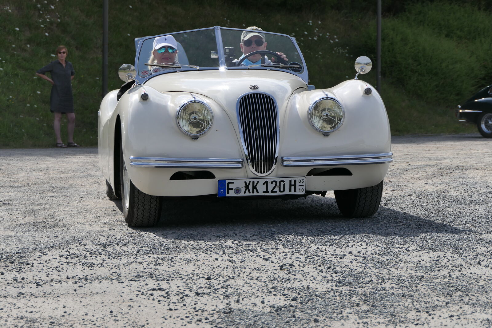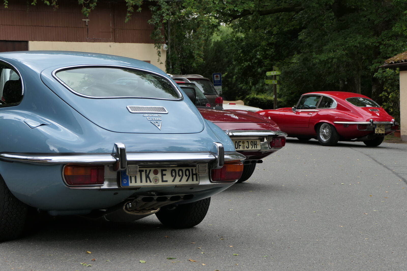 Alles stand bereit, um die 17 Jaguar- Fahrzeuge mit 35 Teilnehmenden zu empfangen; mit Butterbrezeln, Sekt, Saft und Mineralwasser warteten Christine und Martin auf die gemeldeten „Katzen“. Doch die Anfahrt hatte ihre Tücken: Das Navi schickte die meisten in eine kleine Gasse „Außerhalb“ direkt in Ober-Ramstadt statt zur richtigen Adresse „Außerhalb“ in Rohrbach (gehört auch zu Ober-Ramstadt). Doch nach und nach trudelten alle ein, die sich angemeldet hatten. Mit Dr. Stefan Kapp (Mitgliedsnummer 239) und Eckhart Kern (Mitgliedsnummer 314) waren mal wieder zwei Jaguarfreunde dabei, die der JAG seit etwa vierzig Jahren angehören und entsprechend viel zu erzählen hatten.
