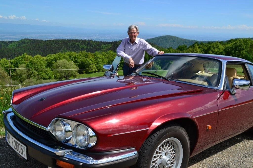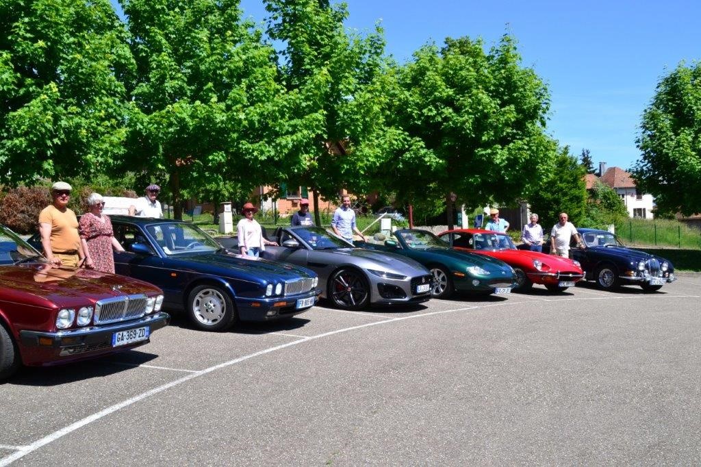 Im Nachbarort Wattwiler beginnt die Route des Cretes, die Vogesenkammstraße. Zu dieser zog es uns nach dem Essen, aber zuerst hielten wir dort noch für ein gemeinsames Bild der Fahrzeuge. Leider fehlt auf diesem der XJS als Schattenparker!