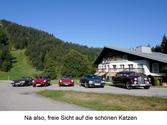 Die Strecke war hervorragend ausgearbeitet. Man ahnt ja gar nicht, wie viele Pässe und Ballons es in Elsass-Lothringen gibt! Es wurde vorwiegend auf kleinen Nebenstraßen im Konvoi gefahren. Der Verkehr meinte es sehr gut mit uns. Die Landschaft ist wunderschön, viel Wald, Berge, kleine Ortschaften und sehr nette Leute, die uns zuwinkten und uns häufig den Vortritt ließen, damit unser Konvoi zusammenblieb. Hier eine Reihe von Pässen, die unsere Katzen ohne Murren bewältigten: Col du Page-Bussang, Col du Ballon (Ballon d’Alsace), Col du Hundsruck, Grand Ballon, Col de la Schlucht, Col de Feignes, Col de Bramont, Col d’Oderen.
