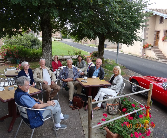 Nächster Stopp Thann mit Besichtigung des schönen gotischen Münsters. Wikipedia sagt: ‚Gebaut zwischen 1351 und 1516, gehört es trotz seiner geringen Größe zu den großartigsten gotischen Architekturen im Süden des mittelalterlichen Reiches‘. Wir stimmten dem zu. Alexander übertraf sich selbst, indem er für alle Jaguare einen Schatten-Parkplatz direkt vor der Kirche fand. So wurde dann in aller Ruhe Mittagspause in einem kleinen Café gehalten, nachdem für uns genügend Stühle vom Keller auf den Gehsteig geschleppt worden waren. Wie gesagt, überall trafen wir auf nette Leute.