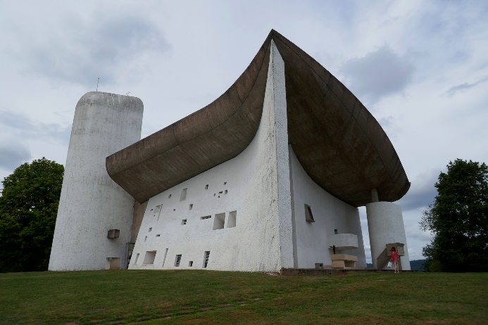 Nach einer der gemütlichen Kaffeepausen erreichen wir Ronchamp, wo die berühmte Kirche von Le Corbusier unser Ziel ist. Es ist ein beeindruckender Ort auf einem Hügel hoch über der Stadt. Man kann sich gut vorstellen, welche Wellen dieses abstrakte Gebäude in den Fünfziger-Jahren auslöste.