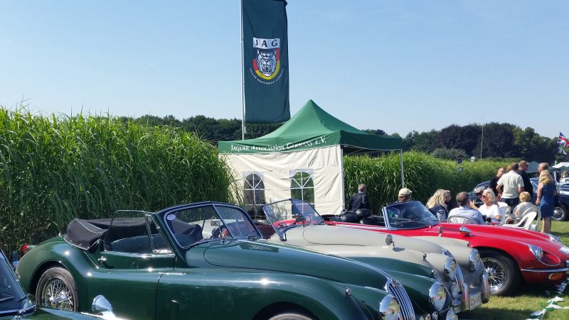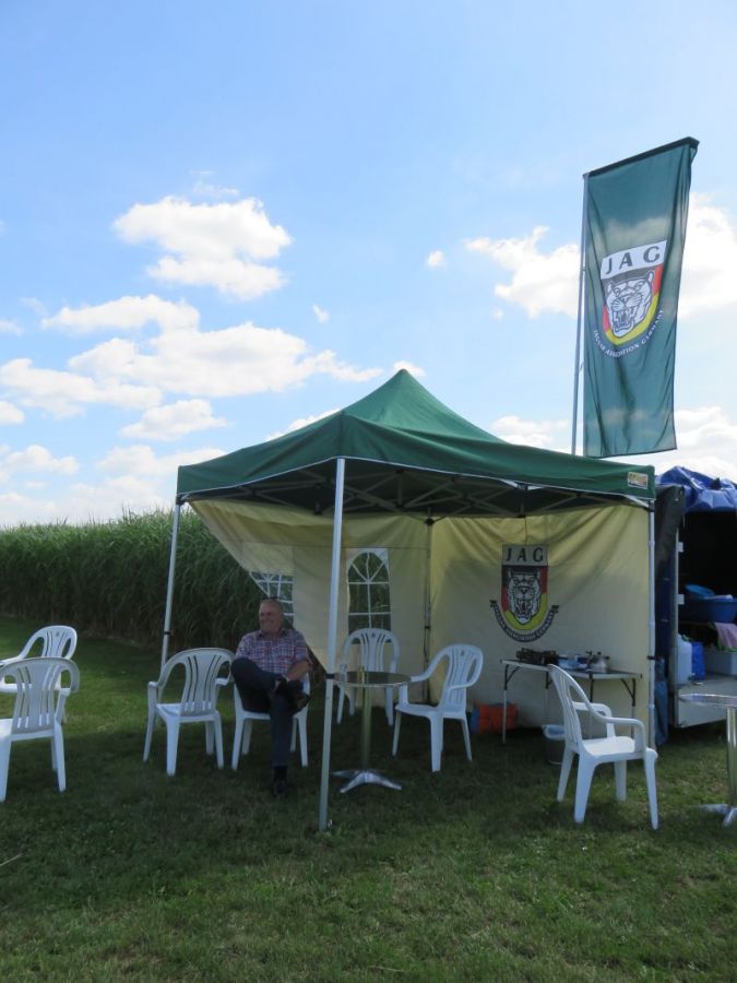 Am Freitag 31. Juli 2015, 8:30 Uhr, wurde das Jaguar-Zelt nebst Fahne von Vera und Willi (Sektion Rhein-Ruhr) aufgebaut und alles für die Veranstaltung hergerichtet.