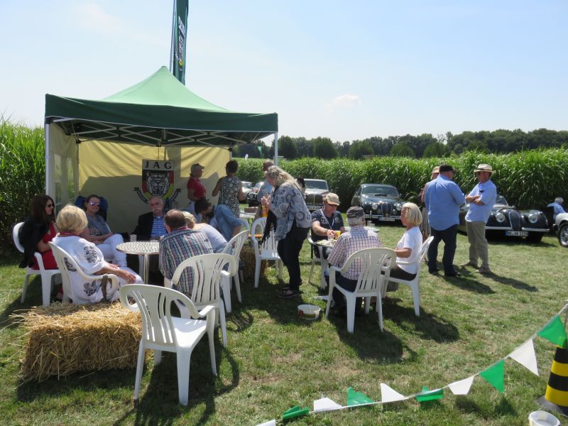 Am Samstag 1. August waren wir wieder um 8:30 Uhr vor Ort. Der Parkplatz war schon zu einem Drittel gefüllt. Mitglieder aus verschiedenen Sektionen der Jaguar Association fanden in diesem Jahr den Weg zu den Classic Days. Es war einfach ein tolle Stimmung. Selbstverständlich gab es selbstgemachten Kartoffel- und Nudelsalat. Unsere Ingrid Büttgen kam am Samstag mit einer großen Schüssel ihres (unter Insidern geliebten und bekannten) Kartoffelsalates zu uns; die kleinen Frikadellen dazu, köstlich!!!! Selbstverständich haben wir auch etwas zu trinken anbieten können; unter anderem in kleinen Mengen den heißgeliebten Kokosrum von Willi, den er als "Bückware" dabei hatte.