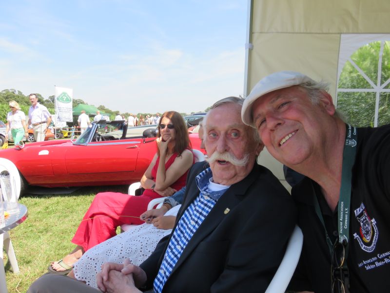 Der Brite Norman Dewis arbeitete 33 Jahre als Testfahrer bei Jaguar. Unser Registrar MK 1 + 2, Franc Müller, traf den mittlerweile 95ig jährigen (Geburtstag am 3.August) und bekam außer einem Foto mit ihm auch ein Autogramm auf unseren Jaguar-Club-Flyer. - Siehe Bilder -.In den Jahren bei Jaguar gingen Hunderte Entwicklungsmodelle durch seine Hände. Er war der verantwortliche Testfahrer für die Modellereihen C-Type, D-Type und den legendären E-Type, er hat die Limousine XJ mit auf den Weg gebracht, er war auch Rennfahrer. Er fuhr 1952 mit Stirling Moss die Mille Miglia, war 1955 mit einem D-Type bei den 24 Stunden von Le Mans am Start und kurvte mit einem XK 120 sogar ins Guinness-Buch der Rekorde: 227,5 km/h schaffte damals kein anderer.