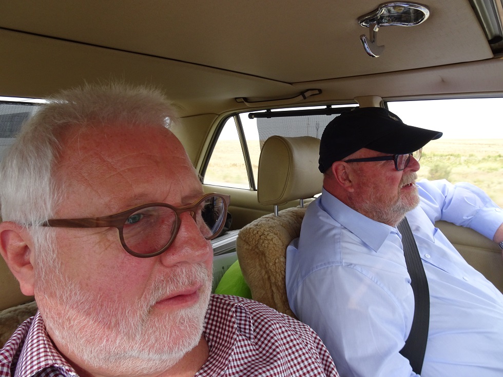 Susanne hat in Ihrem Bericht unsere Fahrten von Astrachan bis Jasliq bestens beschrieben, hoffentlich verfolgt Ihr uns in ihrem Blog www.vonhamburgnachshanghai.de und hier im Reisetagebuch, weil uns gestern am Samstag kein Wlan zur Verfügung stand, war nix mit Internet und whatsapp, stattdessen haben wir in großer Runde draußen zusammen gesessen und miteinander geredet – das hat einwandfrei funktioniert – und der obligatorische Wodka hat auch einige Runden gedreht, bei 2 US-Dollar pro 0,3 l Fläschchen können wir uns das wohl leisten, Aber der Reihe nach: Den Grenzübergang von Russland nach Kasachstan und den Abschied von unserer Super- Alla hat Susanne ausreichend geschildert, auch die Einreise nach Kasachstan, perfekt organisiert von unserer neuen Reisebegleiterin Larissa, Oberkommandeurin zu Land, ein reichlich resolutes Frauenzimmer. Beispiel: beim Abendessen in Kulsary hat sie mit uns die Planung für den nächsten Tag besprochen, da dieser Tag weniger anstrengend werden sollte, kam irgendwie ein Abfahrtstermin mittags um 12 Uhr zustande, manche von uns haben wohl spätestens 12 Uhr verstanden und sind dann schon um 10 Uhr los. Darüber war sie entsetzt, als ich dann in kundtat, auch losfahren zu wollen, hat sie sich derbe echauffiert: Mein Herr, so geht das doch nicht, wenn wir uns auf 12 Uhr verständigen, kann doch nicht jeder machen, was er will, schließlich habe ich doch die Verantwortung für die gesamte Gruppe, so geht das nicht, worauf ich ihr geantwortet habe: Liebe Larissa, sehen sie das nicht so streng. Wir sind weder beim Militär noch im Kindergarten, wo wir in Reih und Glied antreten müssen, es ist sehr hilfreich, dass sie uns mit Rat und Tat bis zur chinesischen zur Verfügung stehen, und Verantwortung für uns übernehmen können und müssen sie nicht. Heute habe ich sie gefragt, ob sie schon einmal in Deutschland gewesen sei, weil sie ja sehr gut deutsch spricht. Sie: „Ja, im letzten Jahr war ich in Hamburg“ Ich: „und waren Sie auch schon mal in Dresden oder Leipzig?“ Sie: „Ja, aber das ist schon lange her“ Weisse Bescheid.