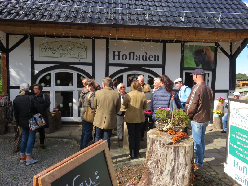 Unsere Fahrt führte uns durch herrliche Straßen des bergischen Landes. Orte wie Remscheid, Witzhelden, Hilgen, Bennert, Dabringhausen und Wermelskirchen lagen auf unserem Weg. Bei herrlichem Sonnenschein kamen wir am Mittag in Neuemühle Emminghausen an. Hier fand eine Führung der „besonderen Art“ statt. Wir besichtigten eine Staußenfarm. Über ein Stunde wurden wir über die Lebensart und die Eigentümlichkeiten dieser Tiere aufgeklärt. Einige von uns nahmen sich zum Schluss noch Erinnerungen in Form von Straußen-Staubwedel oder geschnitzte Straußen-Eier aus dem Straußen-Hofladen mit. Weiter ging es durch die herrliche Landschaft in Richtung Kürten, Wipperfürth durch kleine Orte mit den Namen Ente, Fahlenbrock oder Lamsfuss. Am Nachmittag erreichten wir dann das Landhaus Spatzenhof in Süppelbach. Hier erwartete uns eine „Original Bergische Kaffeetafel“. Diese Bergische Kaffeetafel besteht aus vielerlei Zutaten wie Waffeln mit heißen Kirsche und Sahne, Schwarzbrot, Graubrot, Quark, Marmelade und Kuchen, Wurst und Käse und, und, und…. Es hat herrlich geschmeckt. Nach dieser Stärkung machten wir uns dann, jeder für sich und mit einer gut gelaunten „Katze“, auf den Heimweg.