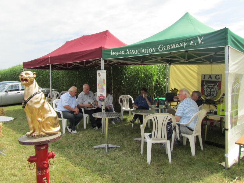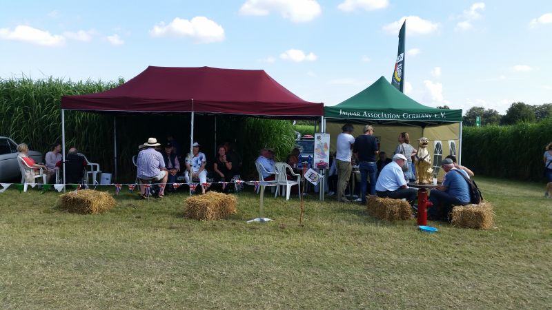 Die Sektion Rhein-Ruhr war mit zwei Zelten als Anlaufpunkt für alle Mitglieder auf dem Dycker Feld vor Ort. Weithin war wieder die große Jaguarfahne zu sehen.