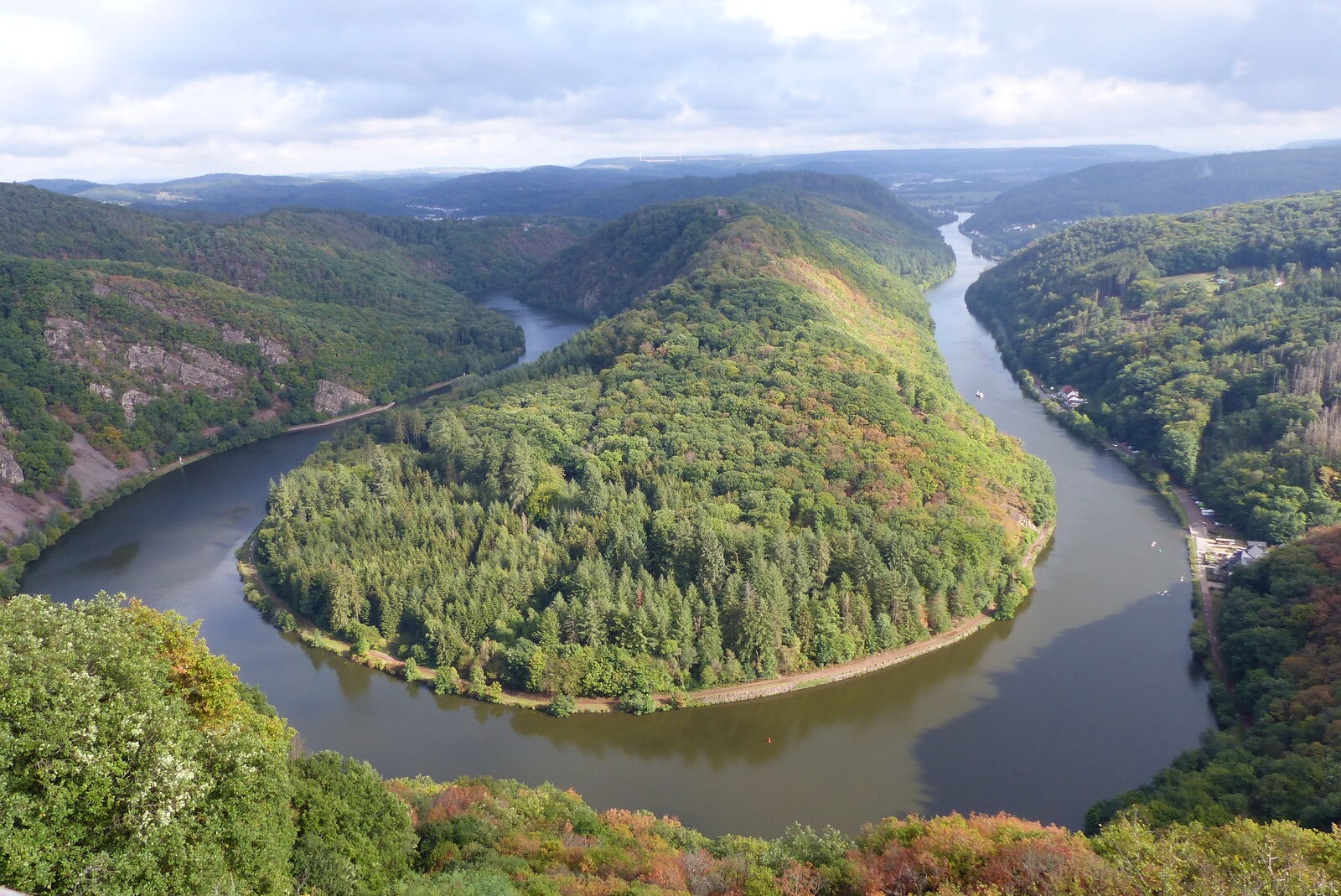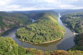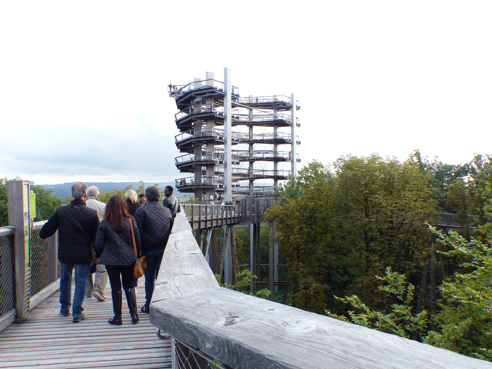 Pünktlich zu unserer nächsten Attraktion hörte der Nieselregen auf und wir starteten zu einem spektakulären Spaziergang auf dem Baumwipfelpfad. Mit einer Gesamtlänge von 1.250 Metern und einer Höhe von 3 bis 23 Metern schlängelt sich der Baumwipfelpfad durch Buchen, Eichen und Douglasien in Richtung Saarschleife - vorbei an zahlreichen Lern- und Erlebnisstationen. Schon auf dem Weg zur Aussichtsplattform konnten wir das Naturwunder Saarschleife und die Umgebung aus einzigartiger Perspektive genießen.