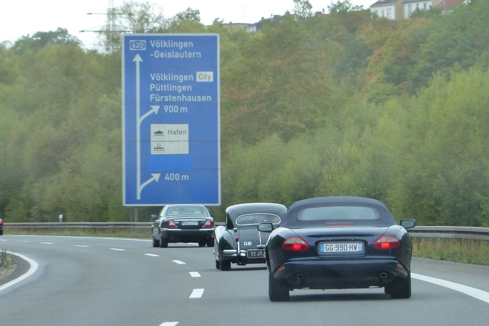 Wieder an unseren schön im Halbkreis aufgestellten Jaguars angekommen, stand die dritte und letzte Etappe des Tages zurück zum Victor’s Hotel bevor. Geplant war die Rückfahrt über eine schöne Strecke Richtung Saarburg, danach entlang der B51 neben der Saar und als Abschluss ein gutes Stück Autobahn. Allerdings wurde die Jaguar Karawane aus unerfindlichen Gründen geteilt und die meisten Teilnehmer nutzten zur Rückfahrt direkt die unbeschränkte Autobahn. Somit war allen möglich, Ihren Jaguar in „freier Wildbahn“ von der Leine zu lassen.