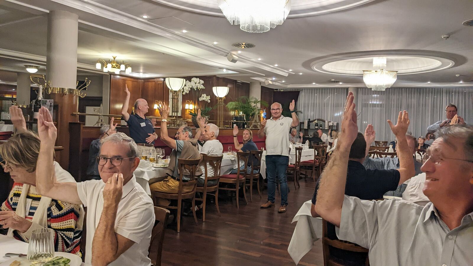 Am Freitag, den 09.09.2022 trafen die meisten der insgesamt 32 Teilnehmer des FJDC im Victor’s Hotel gegen Abend ein. Die 19 französischen Jaguar hatten teilweise bis zu 900 km Anreise hinter sich gebracht. Gemeinsam mit unserem JAG-Saar-Pfalz September-Stammtisch konnten wir uns zum Abendessen mit den Teilnehmern treffen und austauschen.