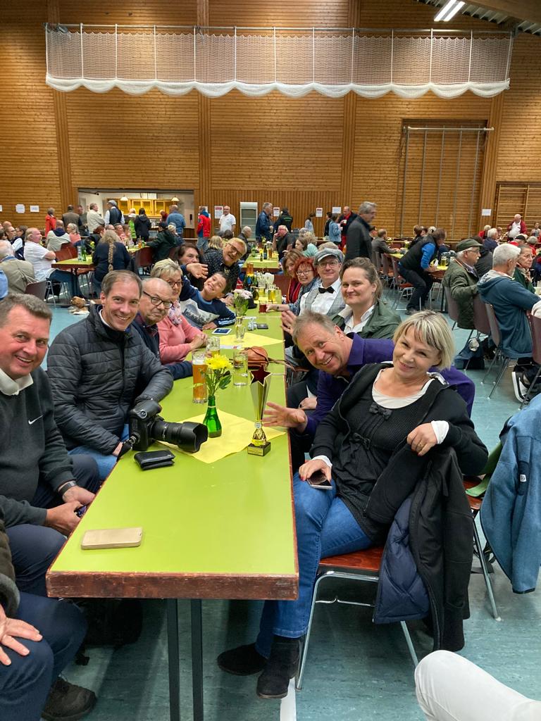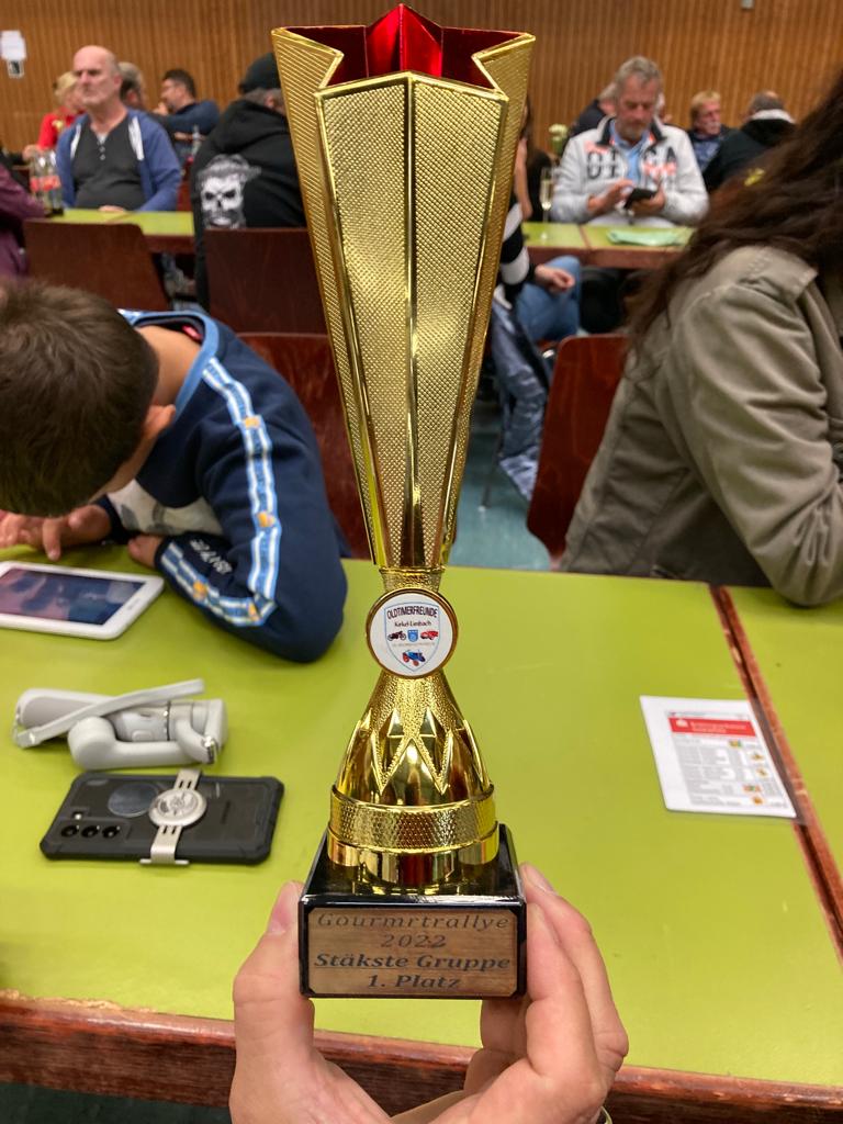 Nach der Rallye fand der Ausklang und die Siegerehrung wieder in der Dorfhalle statt. Wir konnten als JAG Saar-Pfalz den Pokal für die Teilnehmerstärkste Gruppe und ein kleines Fass Bier gewinnen und haben das gebührend gefeiert. Außerdem gewann unser jüngstes Mitglied Marc Migeot den Pokal für das 2. beste Ergebnis bei den Rallyeaufgaben.