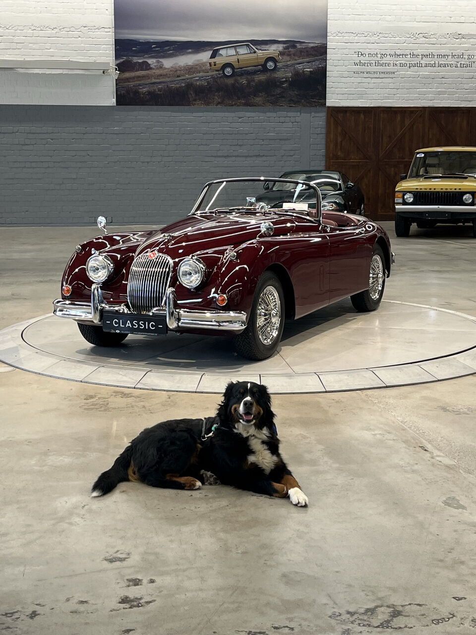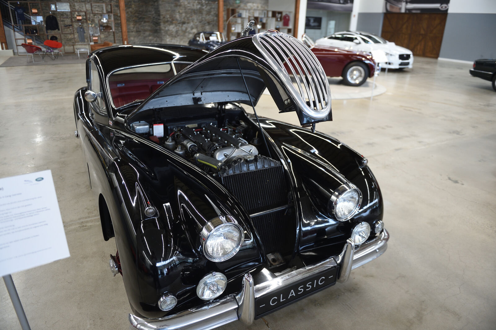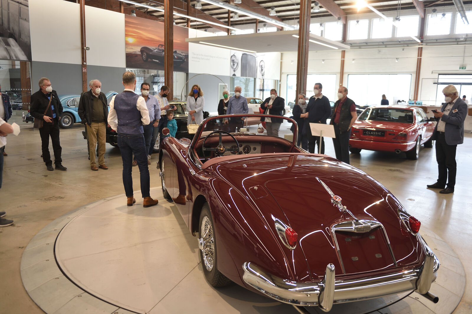 Oliver Schepp-Danne erläuterte die Standortwahl Essen mit der Bedeutung für den deutschen, aber auch europäischen Markt. Die Region hat die höchste H-Kennzeichen-Dichte in Deutschland, liegt nahe an den Benelux-Staaten und ist verkehrstechnisch europaweit gut angebunden. Danach kamen wir in den Genuss, die Showcars des Angebotes zu bewundern. Vom XK 120 über den E-Type bis zum Jaguar XJ der Baureihe X351 reicht die Auswahl an sorgfältig aufgearbeiteten Klassiker mit wenig Kilometern auf dem Zähler. Liebevolle Details wie das Kofferset im XK 150 ließen das Herz des Enthusiasten höherschlagen.