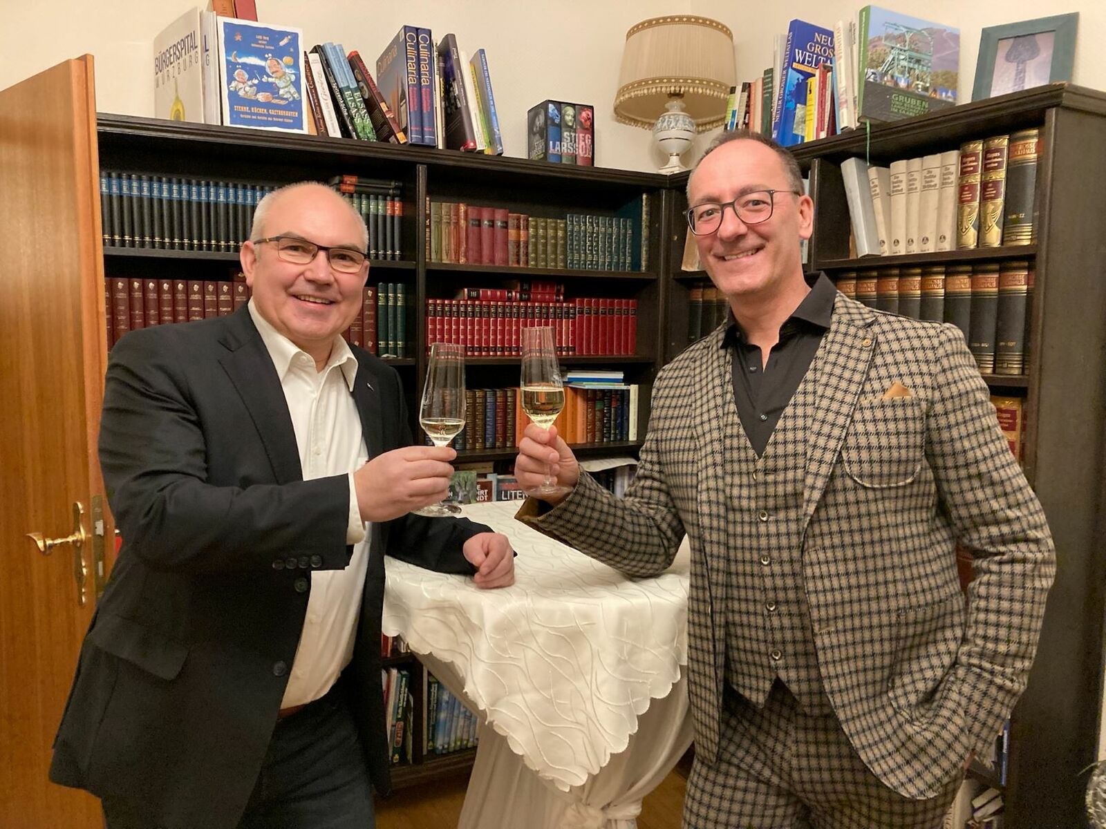 Danach verwöhnte uns Jürgen Schnabel mit einem 4-Gänge Gourmet-Menu und nahm uns auf eine "Wein-Reise" durch Moldavien mit. Dabei wurden wir nicht nur überraschende Weine kennenlernen, sondern auch sehr unterhaltsam das Flair Moldaviens kennengelernt.