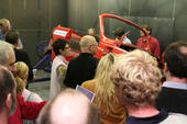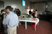 Zum Kaffee zurück, dann noch schnell beim Lackierer vorbei, endlich gibt es den ersehnten Kuchen, umgeben von Oldtimern. Wir sitzen auf der Empore, etwa in Höhe des Flugzeugs, welches gerade noch hochziehen kann, um nicht mit uns zusammenzustoßen.