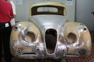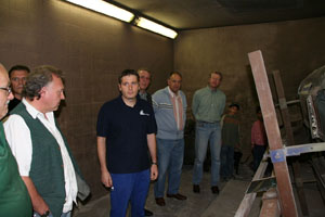 Ralf Humberg, vielen bekannt durch exzellente Oberflächenveredlungstechnik lies nicht lange auf sich warten. Ein E-Type, völlig nackt, war schon vorbereitet. Allen wurde schnell klar, hier wird gearbeitet und da muss man durch. Wenn man etwas aufbauen will, fängt man von unten an. Eis wird hier nicht gegessen, sondern mit voller Wucht gegen unsere schönen Autos geschleudert. Warum das gemacht wird? Die Baumberge sind voller Geheimnisse. Sie werden es wissen.
