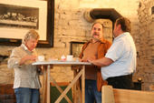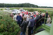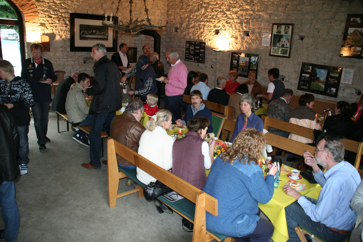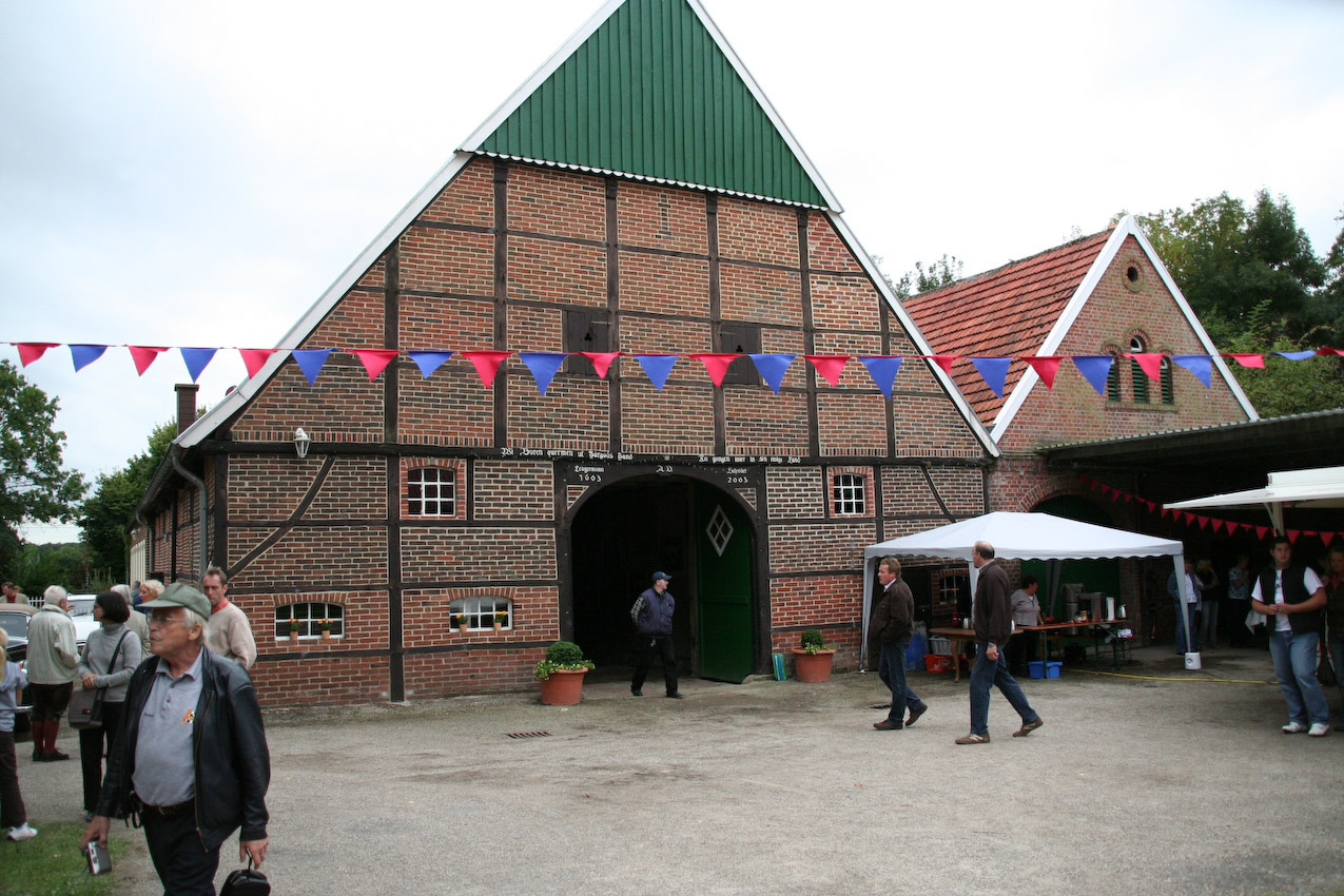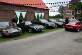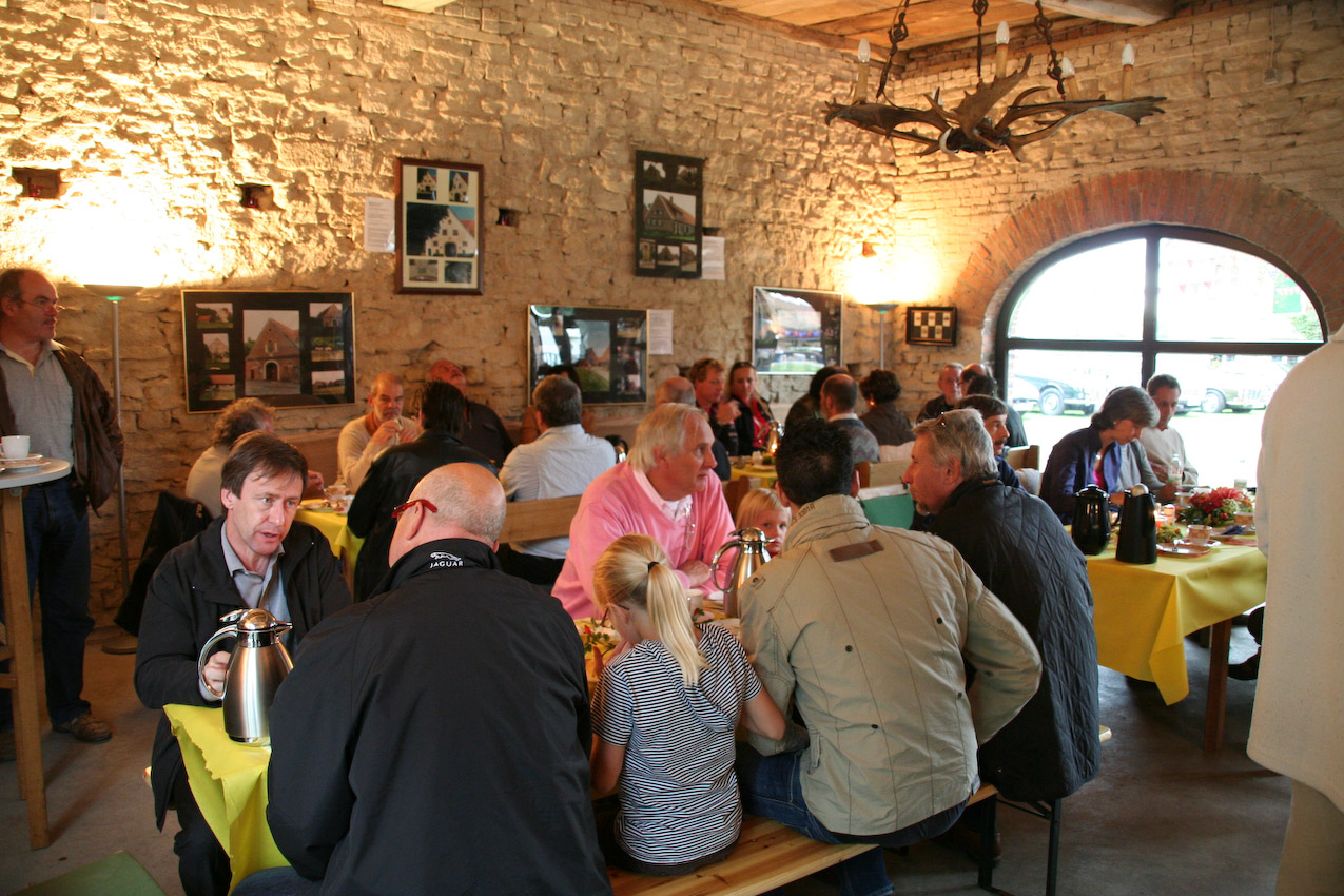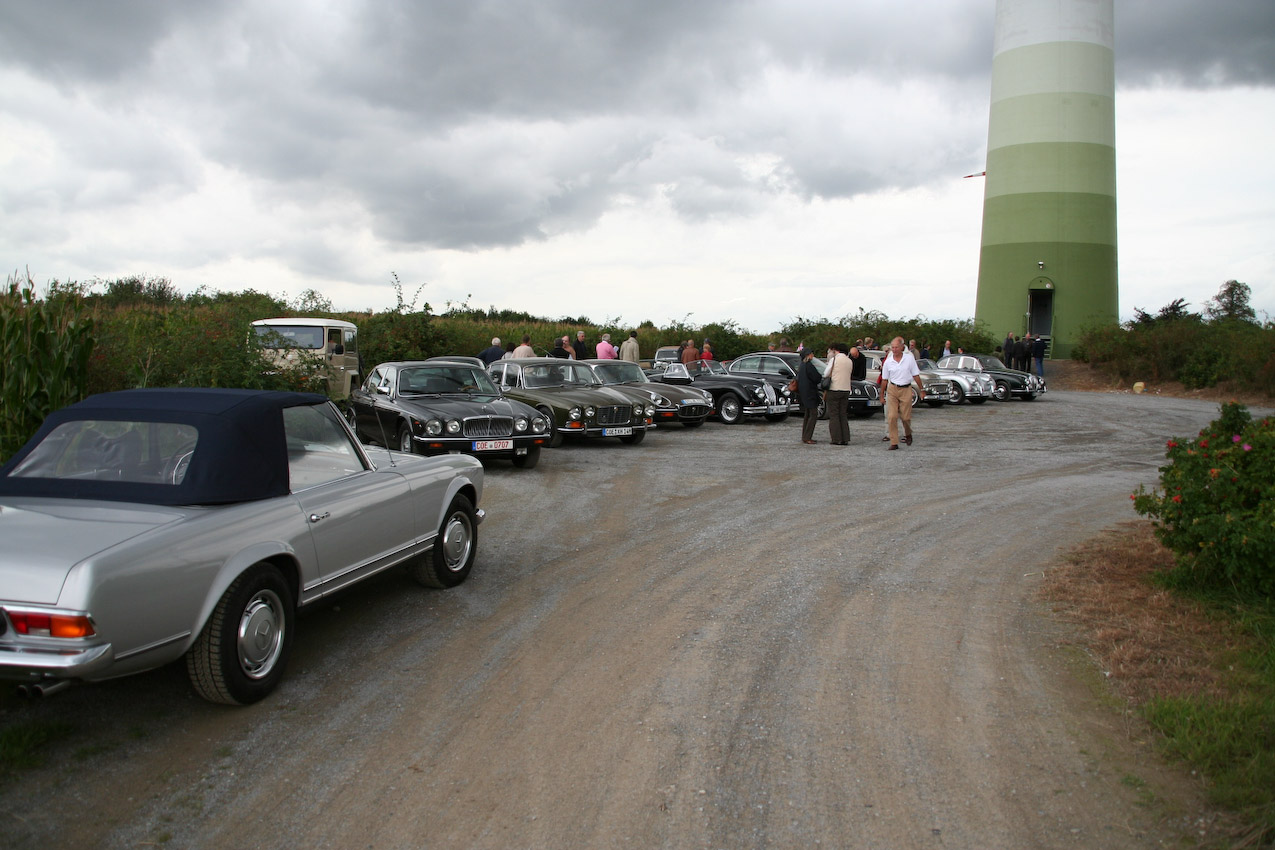 ich moechte mich auf diesem Wege noch einmal bei Frau und Herrn Klopfer fuer die bereits zum vierten Mal ausgerichtete "Fahrt durch die Baumberge" bedanken. Wie schon in den letzten Jahren erwartete die ca. 40 angereisten JAGuaristen und Klassikerfreunde anderer Marken ein liebevoll gestaltetes Programm, eine sorgfaeltig vorbereitete Ausfahrt und das beruehmt-reichhaltige Fruehstueck im Klopfer´schen Museum. Nach ausfuehrlicher Staerkung ging es ueber vertraeumte Nebenstrassen durch die Nottulner Baumberge auf den Schoeppinger Berg zum gleichnamigen Windpark, wo uns ein hoch interessanter Vortrag ueber diese moderne und umweltfreundliche Art der Energiegewinnung erwartete. Insgesamt 14 Windenergieanlagen vom Typ E-66 (nicht verwandt oder verschwaegert mit dem Namensvetter der Marke JAGuar) produzieren hier im Jahr bis zu 58 Millionen kWh Strom - und das voellig CO2 frei (auch das ein signifikanter Unterschied zum vierraedrigen E-Type...). Die anschliessende Weiterfahrt fuehrte uns zur Wennings Muehle, einer schoen restaurierten Wassermuehle, in der noch bis vor 60 Jahren Futtergerteide fuer den Hof Wenning geschrotet wurde. Zum Abschluss unserer Ausfahrt erreichten wir dann den Hof Leugermann-Schroeder, wo uns nicht nur eine reich gedeckte Kaffeetafel, sondern auch ein interessiertes Publikum und stilecht in Trachten gekleidete junge Muensterlaender erwarteten. Bei, immer noch, gutem Wetter, vielen (Benzin-) Gespraechen mit bekannten und neuen JAGuaristen der naeheren und weiteren Umgebung wurden neue Bekanntschaften geschlossen und Erfahrungen ausgetauscht. Fazit: Klopfers schaffen es immer wieder, die Latte noch ein Stueck hoeher zu legen als im Vorjahr und so koennen wir uns schon alle auf die "Fahrt durch die Baumberge 2009" freuen... In diesem Sinne und im Namen aller JAGuaristen ein herzliches Dankeschoen und viele Gruesse nach Nottuln